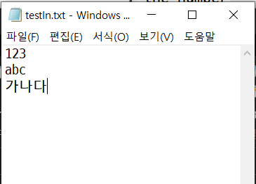 D:/Programming/_temp/ 폴더의 testIn.txt 은 아래와 같다.